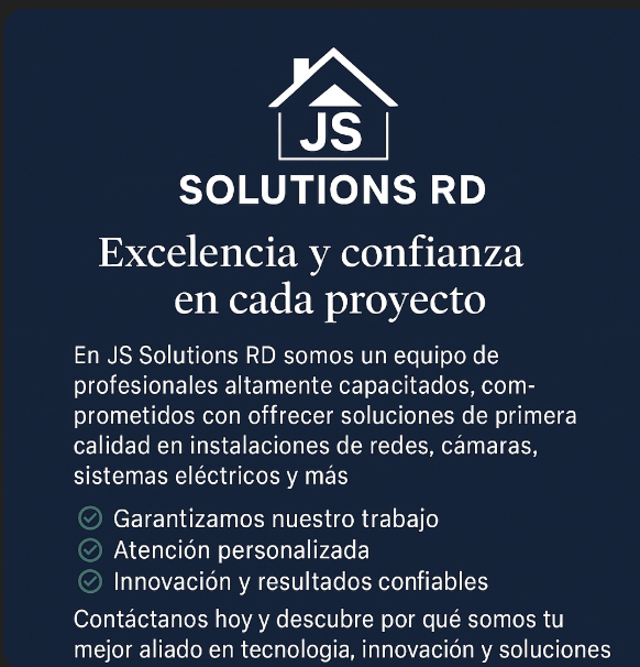 En JS Solutions RD estamos listos para ayudarte con instalaciones de redes, cámaras, sistemas eléctricos y mucho más.